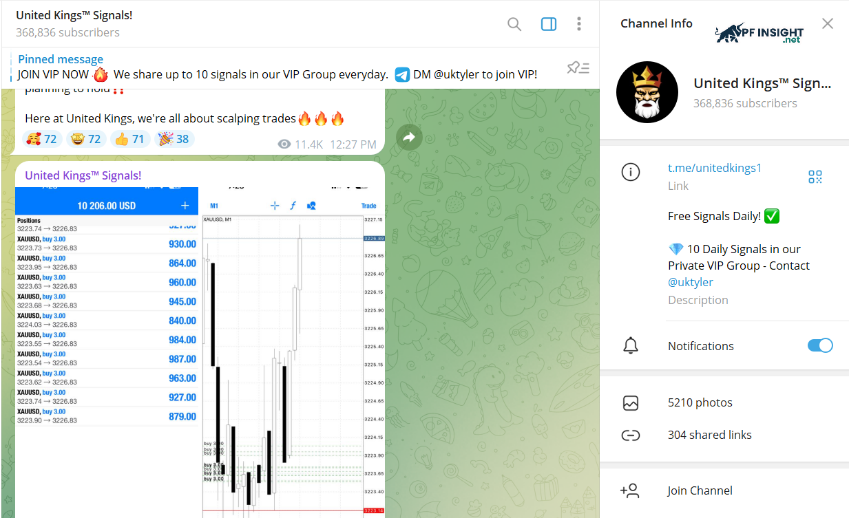 United Kings stands out with an impressive accuracy rate of around 90% – one of the highest among Forex signal channels on Telegram. Traders can start their experience through the free public channel, which provides one thoroughly analyzed trading signal per day.