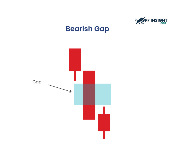 A bearish fair value gap forms when the lowest point of the first candlestick doesn’t connect to the highest point of the third candlestick, often appearing within the middle candlestick body. This reflects an imbalance and the possibility of selling pressure prevailing, helping traders identify effective entry opportunities for short positions.