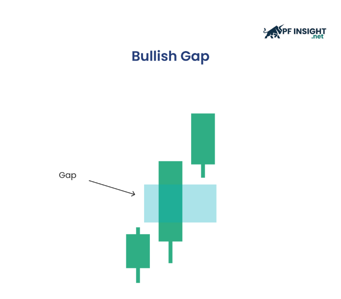 • Bullish FVG: A bullish gap is formed when the price of the third candle fails to return to the peak of the first candle. This leaves a portion of the central candle’s range untraded by the market, reflecting dominant buying pressure.