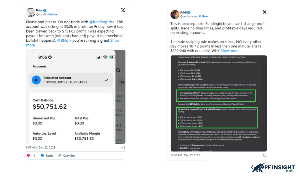 On platform X, user Sahil strongly protested FundingTicks’ unilateral changes. He asserted that imposing new profit-sharing ratios, setting order holding times, and changing the mandatory number of profitable days for active accounts was unacceptable. According to Sahil, these policies should have been subject to community consultation instead of being imposed unilaterally. He emphasized that the old rules were more balanced and sustainable for both sides.