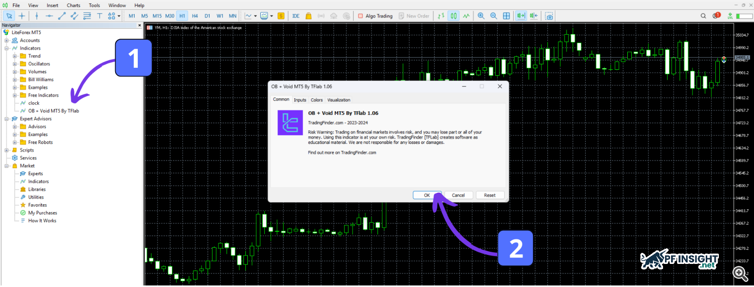 • Drag and drop that indicator onto the desired trading chart, customize the parameters if needed, then click “OK” to complete the “how to install indicators on MT5” process.