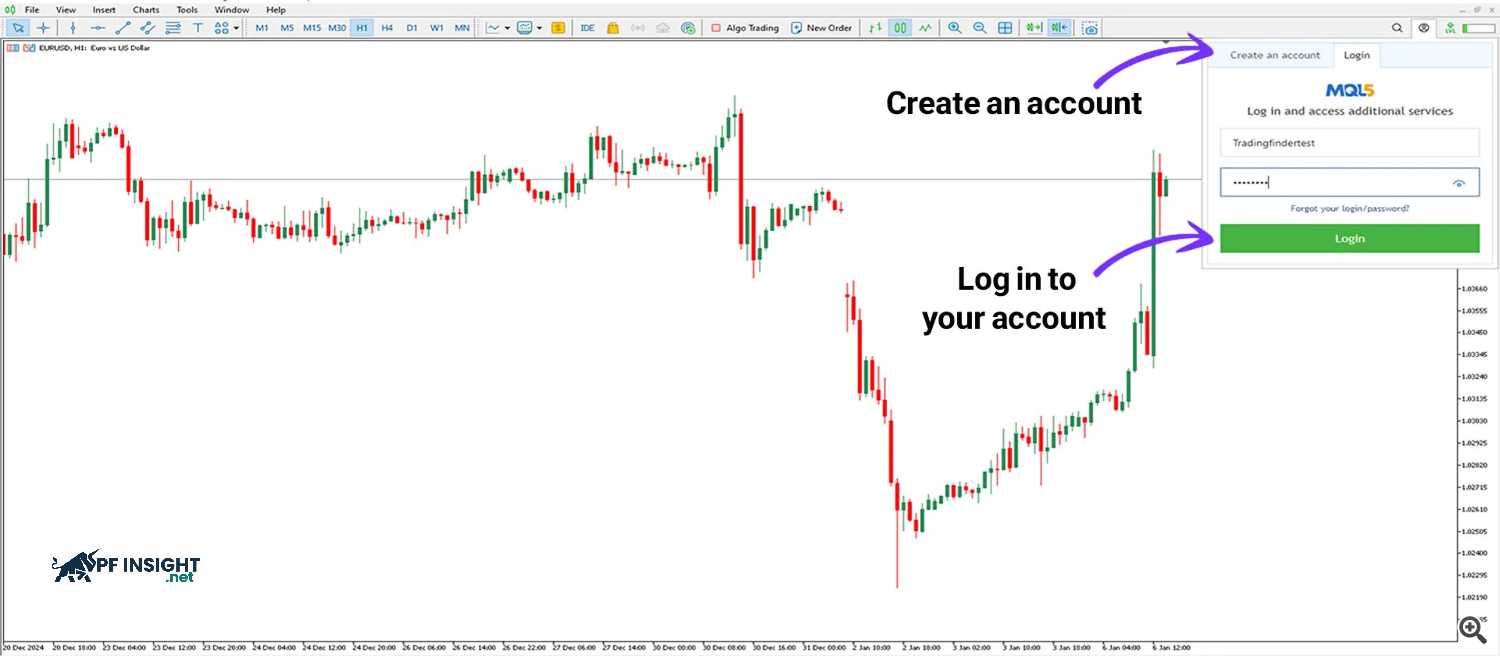 • Open the MetaTrader 5 application and log in with your MQL5 Community account.