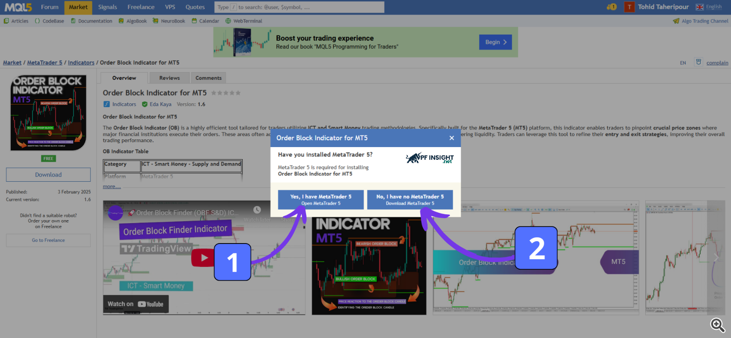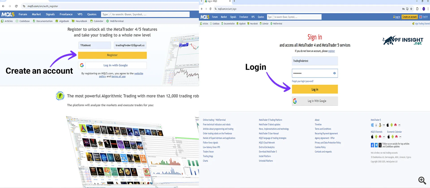 • Before proceeding with how to install indicators on MT5, you need to have an account on MQL5.com.