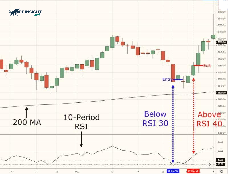 - Exit order: First target when RSI hits 50, second target around 20 EMA.