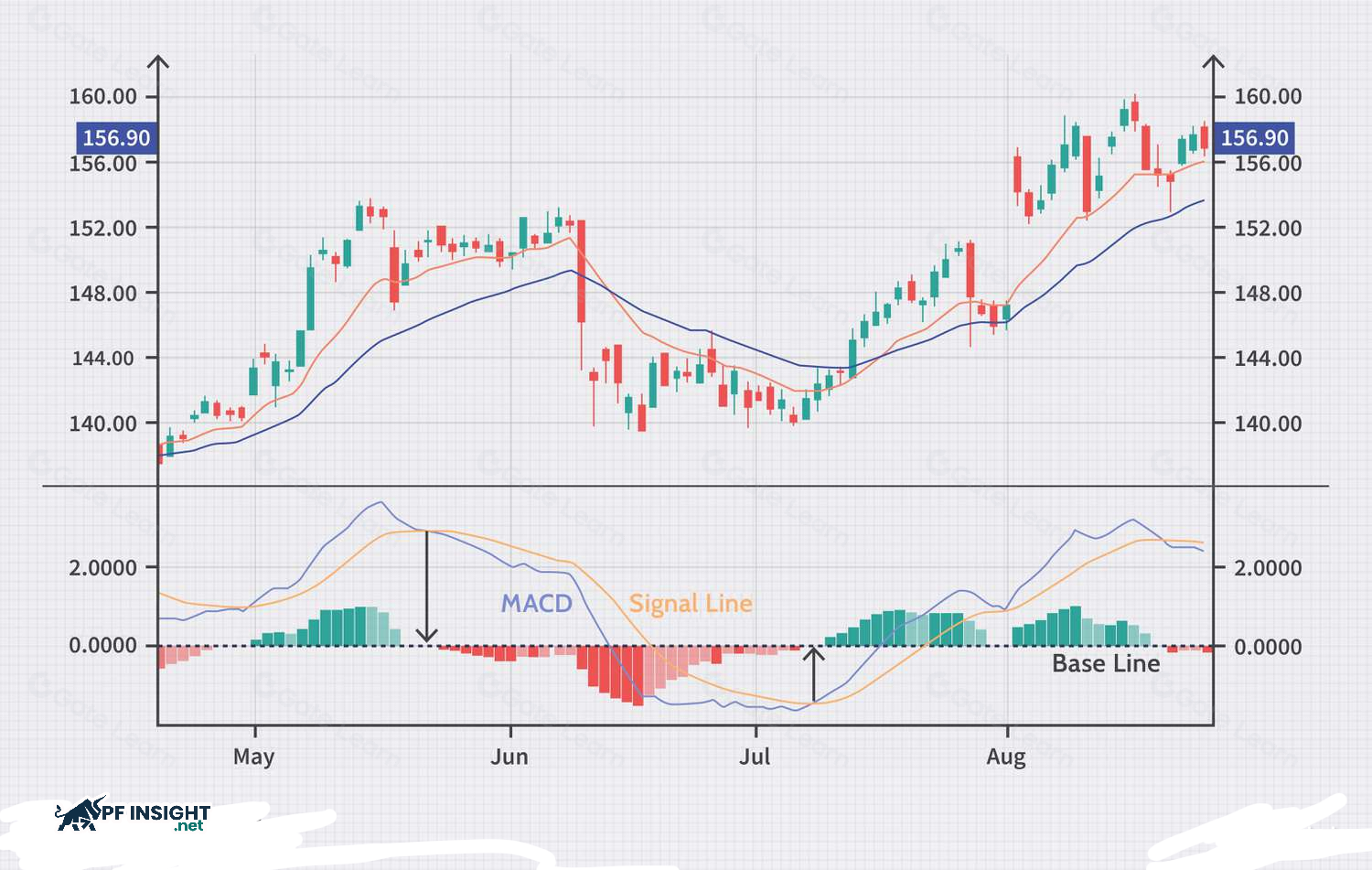 In technical analysis, the MACD helps traders identify the market direction and current trend momentum. The indicator’s structure consists of two main lines and a histogram to aid observation. A buy signal appears when the MACD line crosses above the signal line, while a sell signal forms when the MACD crosses below the signal line.
