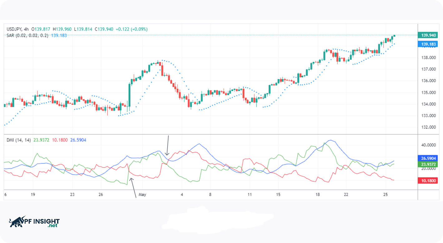 Parabolic SAR is a useful tool for identifying upward or downward market trends. Based on the position of the dots relative to the price line, traders can assess the direction and strength of the current trend.
