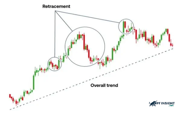 A retracement is a term used to describe small-scale price movements that go against the main trend. This is when prices temporarily correct against the direction of the broader trend before resuming their original course.