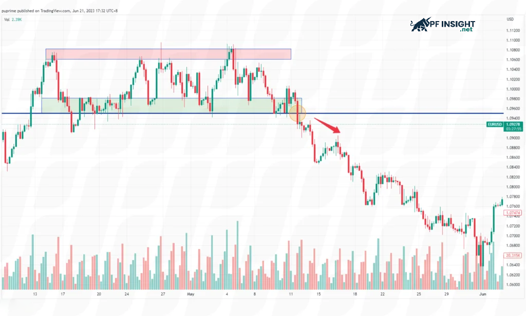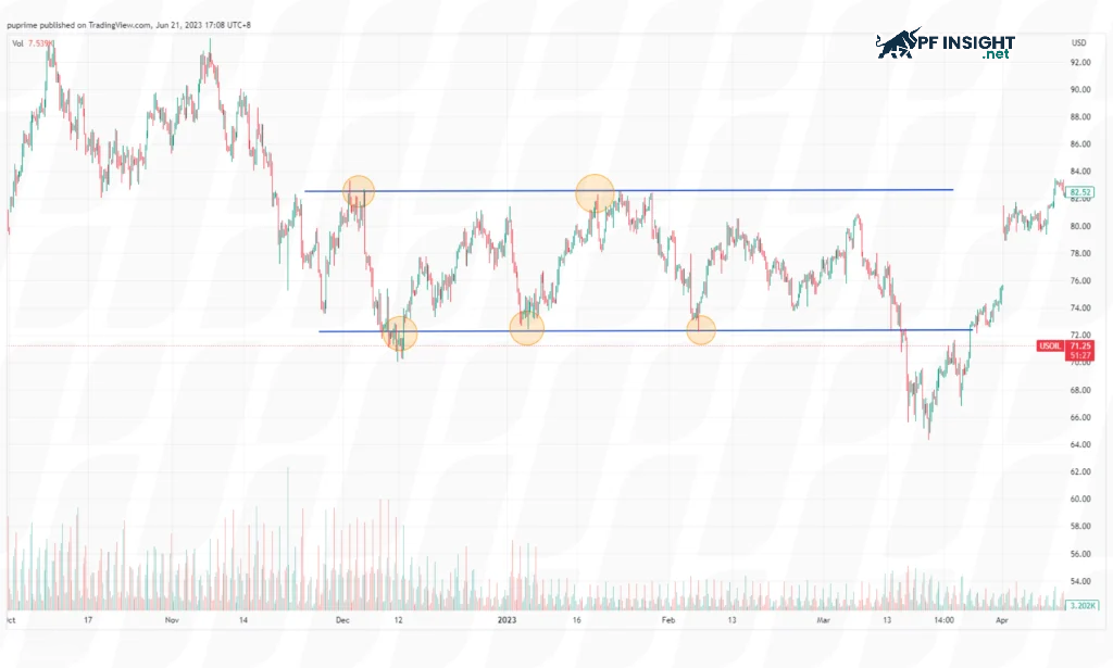 • Support levels: These levels act as temporary price bottoms, where buying demand outweighs selling pressure. When trading near these areas, traders have the opportunity to enter the market at favorable price points, taking advantage of price rebounds and benefiting from upward movements within the trading range.
