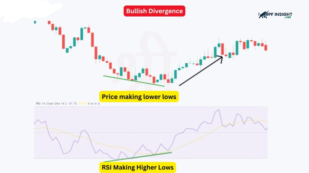 In a downtrend, not every low signals a reversal. Bullish divergence occurs when the price creates a lower low but the RSI creates a higher low, indicating that selling pressure has subsided. However, for safety, you should wait for the price to break above the previous reversal low. This is a confirmation that the buyers have taken control, helping you avoid bearish traps.