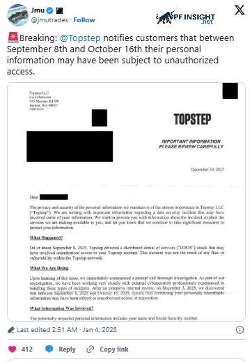 According to the letter being shared, Topstep will provide a free credit monitoring service to protect the rights of users whose information has been compromised.